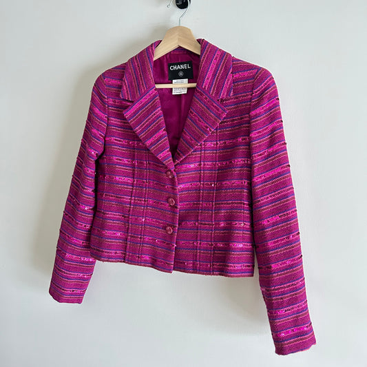 VINTAGE CHANEL FUSCHIA PINK SEQUIN BLAZER SIZE 36