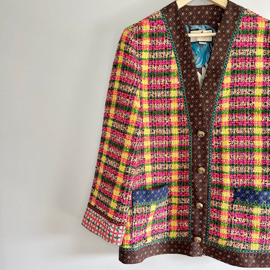 GUCCI CHECKED BUTTON DOWN TWEED BLAZER SIZE 42