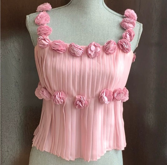 CHANEL VINTAGE RARE SILK 3D FLOWERS SILK TOP SIZE 38