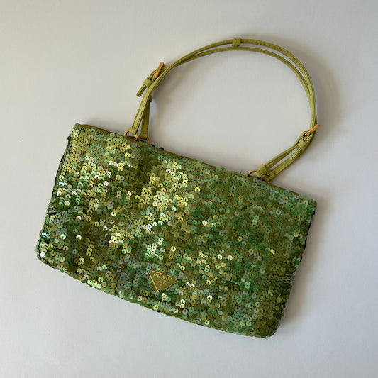 PRADA LIME GREEN SEQUIN TOP HANDLE BAG
