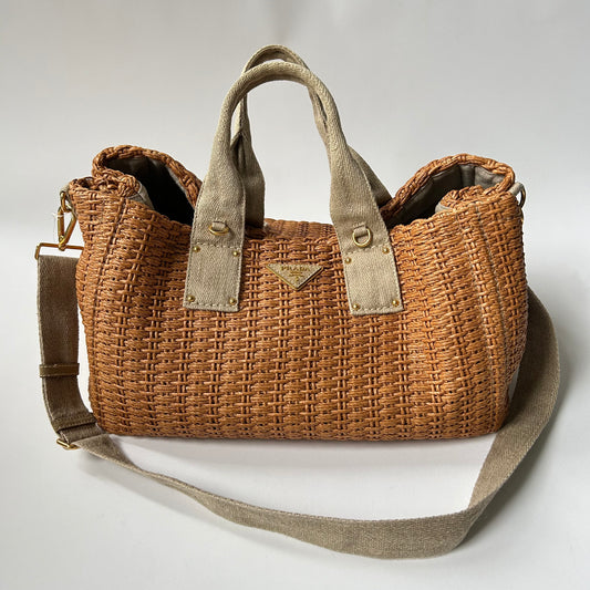 PRADA CANAPA STUOIA STRAW WOVEN HANDBAG