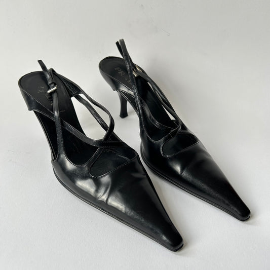 PRADA VINTAGE BLACK POINTED TOE KITTEN HEELS SIZE 7.5