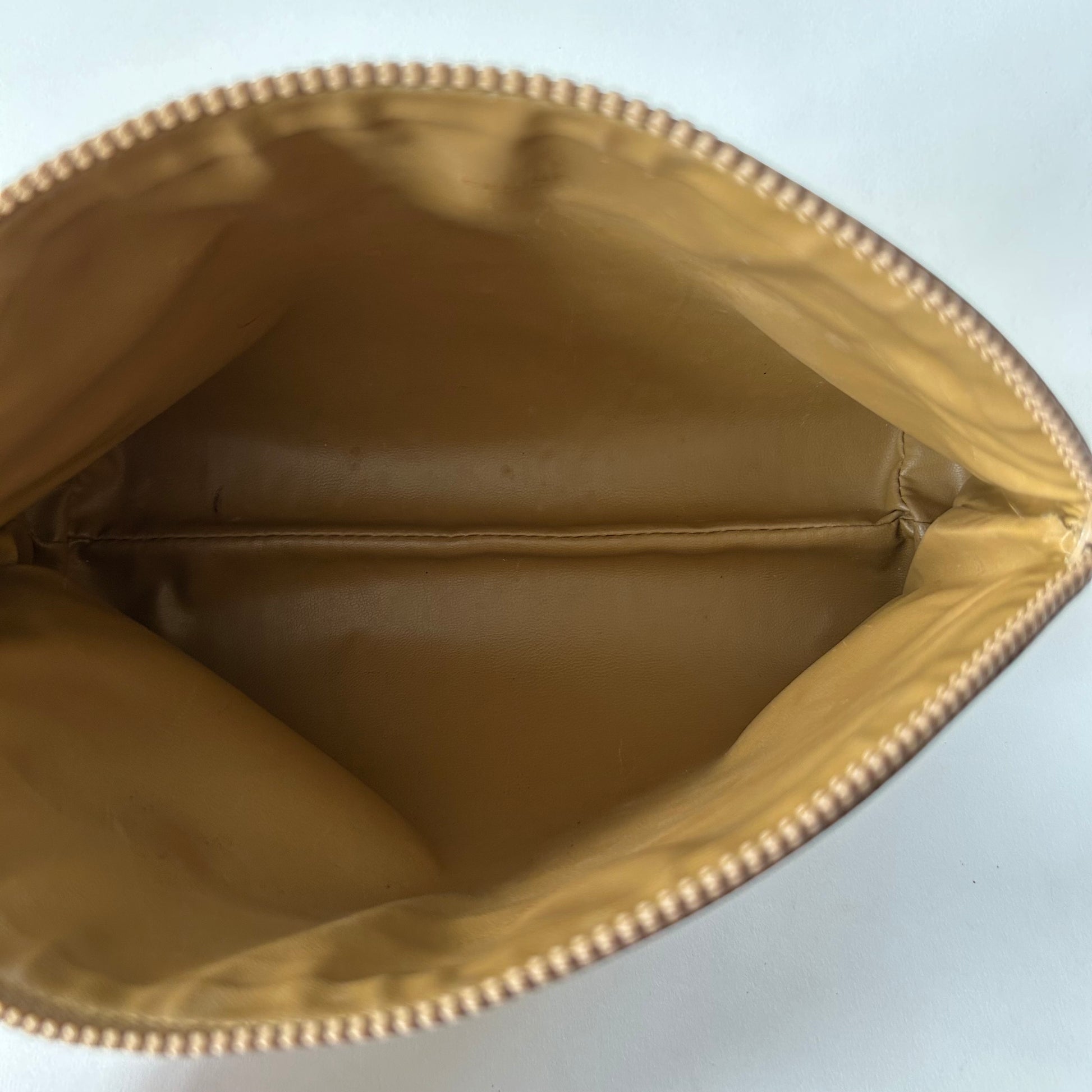 CELINE Macadam PVC Leather Pouch Clutch Bag Beige Brown Purse Vintage.